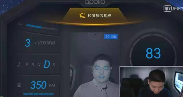 在被他打开的第二个视频中,专供于卡车司机的「疲劳驾驶监测系统」,则让全场大笑了一会儿——因为一旦被车前的镜头识别到司机头往一边歪之后,司机就被语音和一段吵闹的音乐吵醒了。而这其中,用到了百度的计算平台与图像识别技术。