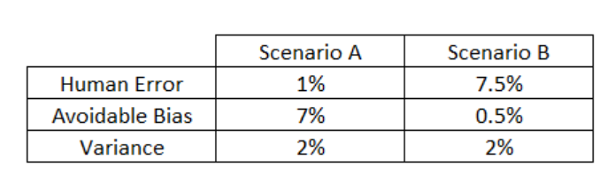 通过将人类级别的性能作为贝叶斯误差的代理(对于图像识别),我们可以大致了解是否需要关注偏差与方差之间的均衡从而提升系统的性能。