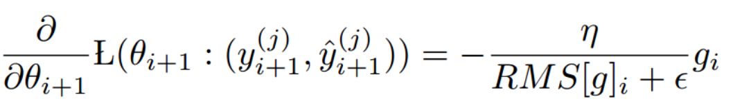 使用历史梯度的信息 E[g^2]_t 替换对角矩阵 G_i,得到