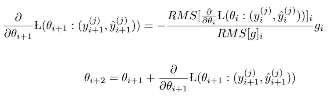 我们首先会初始化梯度与超参数,然后计算当前时间步某个参数的梯度,再如上 E[g^2] 所示的移动均值计算式获取短期历史梯度的信息。在利用历史梯度的移动均值情况下,我们可以根据短期梯度信息为每个参数设计学习率。但正如论文 ON THE CONVERGENCE OF ADAM AND BEYOND 所述,这种方法可能在某些情况下只能收敛到次优点。