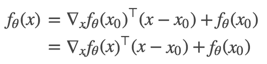 以下是我的解释,与作者给出的简单证明略有不同。正如讨论的那样,一个通常的修正线性网络对于 x 是分段线性的。当我们改变 θ 时,线性分段的边界和斜率随之改变。若我们固定 θ,那么只要 x 和一些 x_0 落在相同的线性区域内,函数在 x 处的值等于它在 x_0 的泰勒展开式: