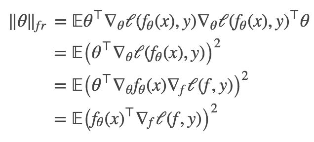 在这种形式中我们可以很清楚地看出,Fisher-Rao 范数只取决于函数 f_θ (x) 的输出和损失函数的性质。这意味着如果两个参数 θ_1 和 θ_2 实现相同的输入-输出函数 f,他们的 F-R 范数将是相同的。