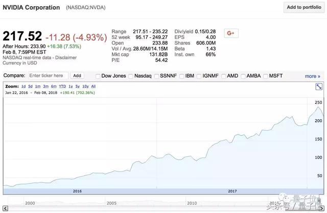 目前英伟达的股价为217美元,PE达到了54倍。过去12个月里,英伟达的股价又涨了83%。2016年2月,英伟达股价只有25美元。