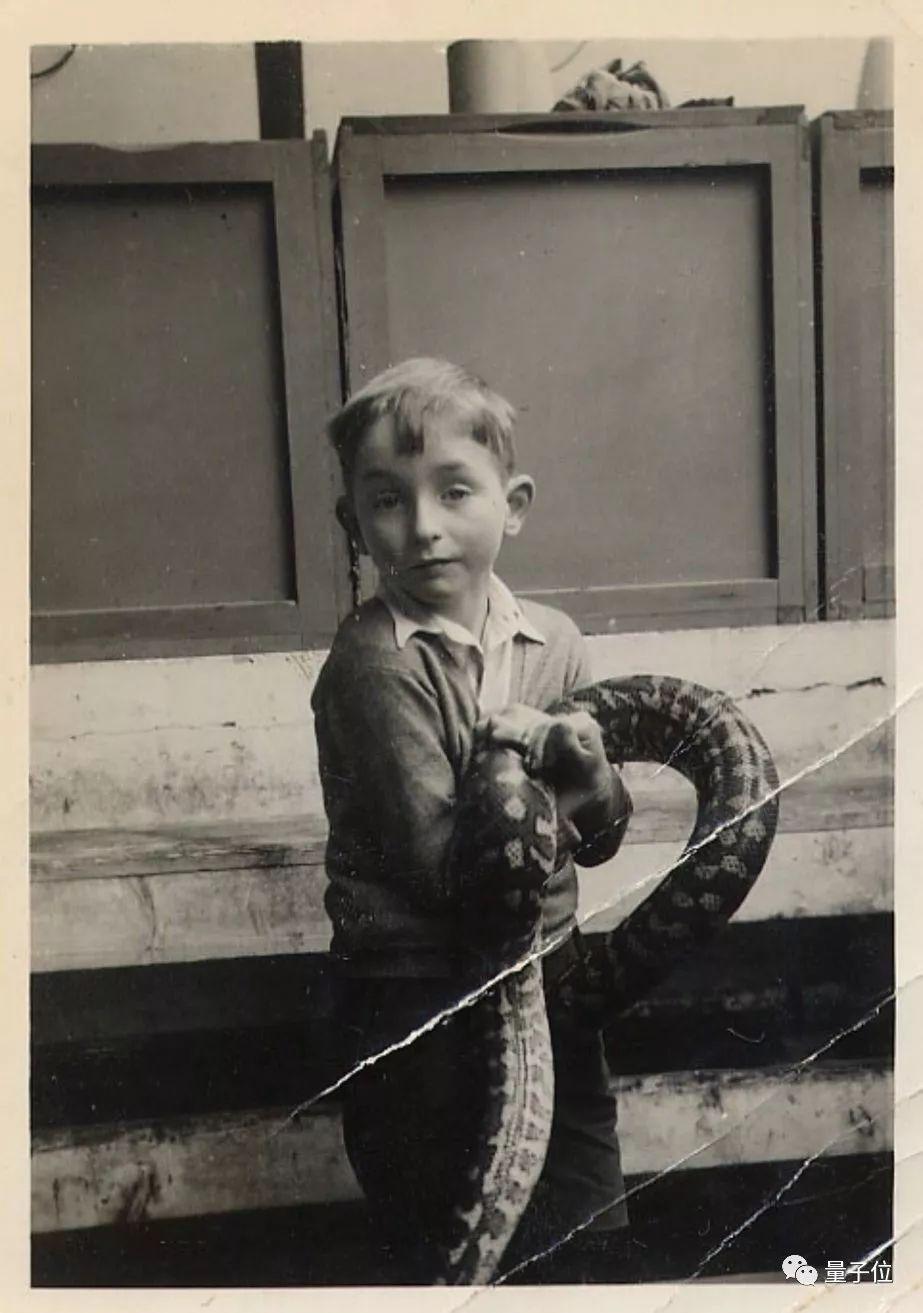 △ 8岁的Hinton抱着一条蟒蛇(python)