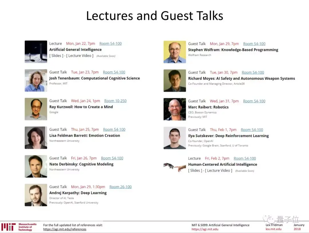 量子位前边也说了,这门新开的AGI课,Fridman自己讲得不多,主要靠客座讲师们。Reddit上对这门课的质疑,主要也是嫌弃主讲人只讲个通论,其他就扔给客座讲师了。