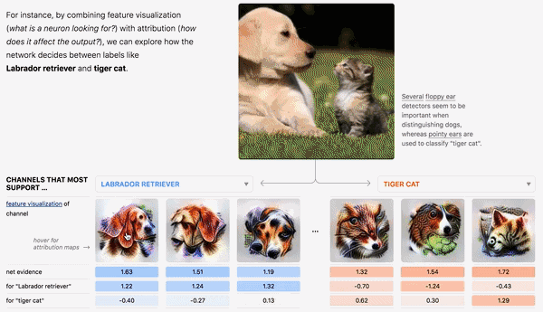 归因是一组通过解释神经元之间的关系来回答上述问题的技术。最常见的归因界面称为显著图,这是一种简单的热图,但这种方法也有自身缺陷。