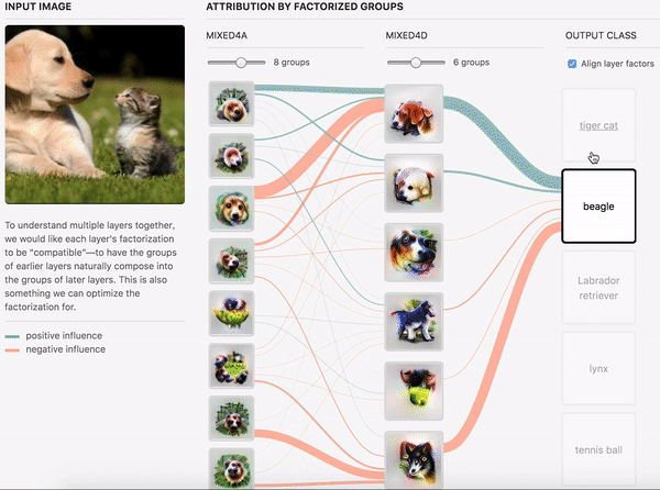 这就为我们提供了一个探索解释性界面的框架。比如说,我们可以看看这样的解释性界面如何帮我们比较开头示例图片的两种潜在分类: