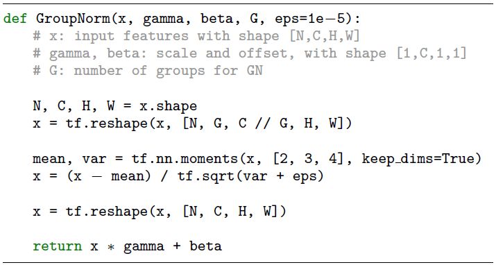 图 3:基于 TensorFlow 的组归一化 Python 代码。 实验结果