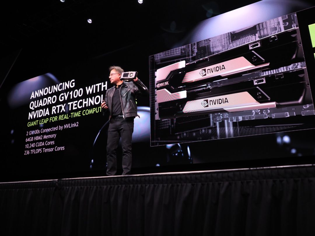 图注:黄仁勋 Keynote 演讲总结 搭载英伟达 RTX 技术的 GPU Quadro GV100