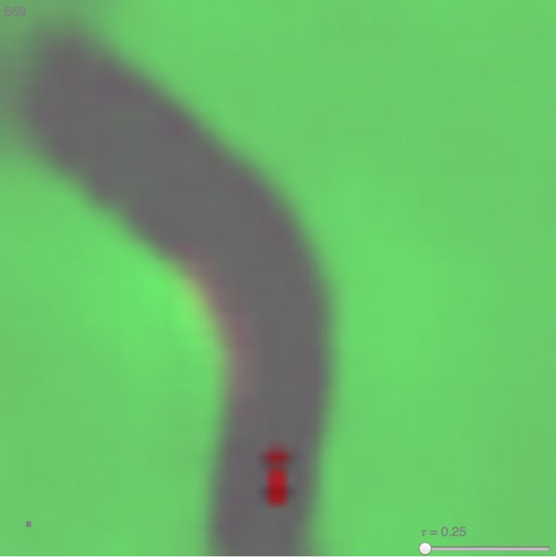 经过一段时间训练后,我们的控制器学会在梦境中寻路,逃离 M 模型生成怪兽的致命火球攻击(fireballs shot)。