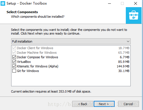 然后安装所依赖的软件,因为笔者之前在电脑上已经安装了 git,所以在这里就不安装了,其他都要勾选