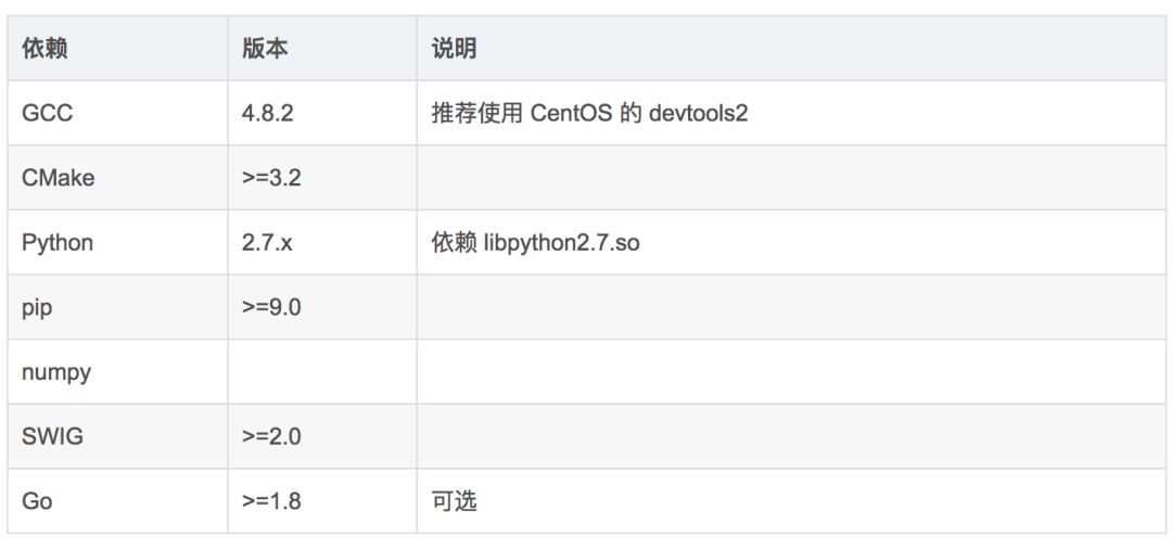 从源码编译生成安装包 我们的硬件环境都有很大的不同,官方给出的 pip 安装包不一定是符合我们的需求,比如笔者的电脑是不支持 AVX 指令集的,在官方中没找到这个的安装包(也行现在已经有了),所以我们要根据自己的需求来打包一个自己的安装包。 在本地编译生成安装包 1. 安装依赖环境 在一切开始之前,先要安装好依赖环境,下面表格是官方给出的依赖环境