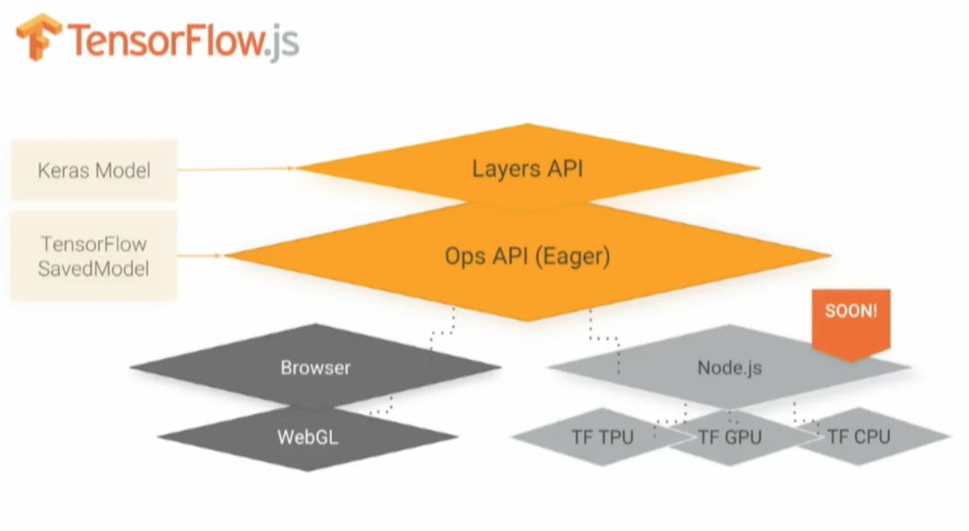 而且据统计,两年内,TensorFlow 已经有一千一百万下载,超过三万的 commits,6900 以上的 pull requests,1400 多位 contributors。 今年,围绕 TensorFlow,谷歌同样做出了几项重大宣布: 1. 发布新的 TensorFlow 官方博客(http://blog.tensorflow.org/)与 TensorFlow YouTube 频道; 2. 面向 JavaScript 开发者的全新机器学习框架 TensorFlow.js; 3. 发布一系列新的库与工具:例如 TensorFlowHub、TensorFlow Probability API、Nucleus、DeepVariant 等。 在今天的几项重大宣布中,比较有趣的是面向 JavaScript 开发者的全新机器学习框架 TensorFlow.js。在下文中,机器之心对 TensorFlow.js 做了细致介绍: 在大会的 Keynote 中,TensorFlow 团队表示基于网页的 JavaScript 库 TensorFlow.js 现在已经能训练并部署机器学习模型。我们可以使用神经网络的层级 API 构建模型,并在浏览器中使用 WebGL 创建复杂的数据可视化应用。此外 Node.js 很快就会发布,它能为网站模型提供 GPU、TPU 等快速训练与推断的方法。