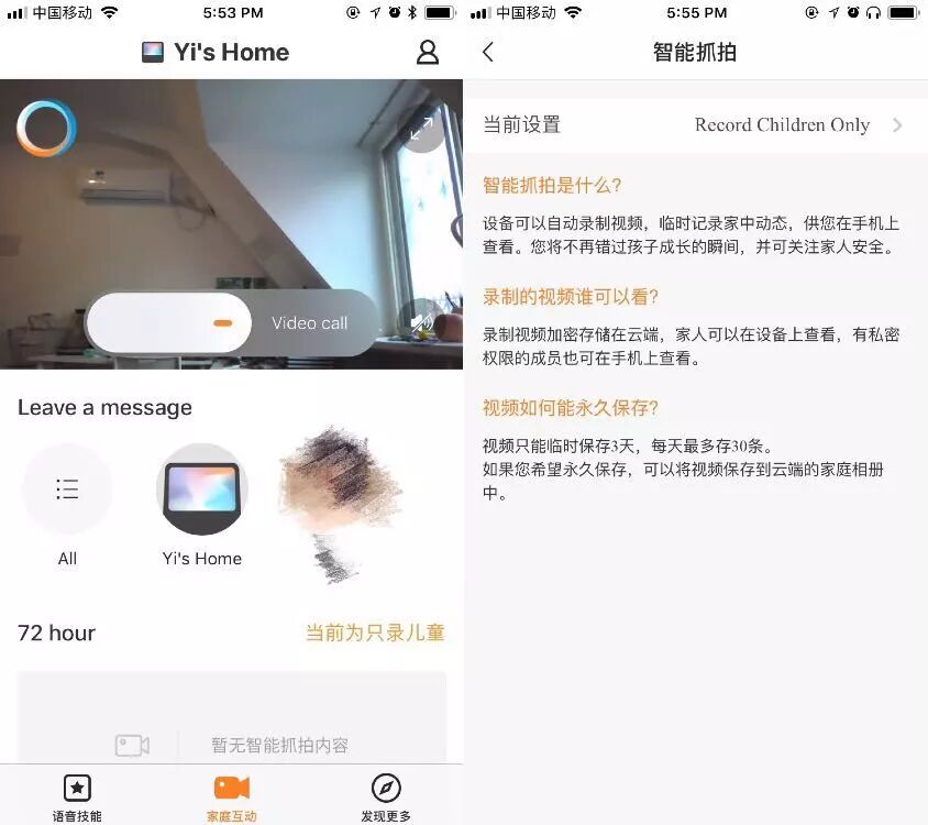 | 小度在家 3 月 26 日发布当天,李彦宏亲自站台,厂长的现身也引来朋友圈满屏的喝彩。 4 月 10 日,小度在家正式开卖,仅一分钟的时间,首批现货一万台便宣告售罄。今天(4 月 26 日)上午 10:00,小度在家在京东开始第二批预售。百度表示,二次发售情形依然火爆,不到 3 分钟被抢完,并登上京东热卖榜。 百度度秘事业部总经理景鲲上周在朋友圈发布了团队庆功的现场照片,印有团队「战果」的蛋糕依次排开,百度集团总裁兼首席运营官陆奇切过蛋糕,站在桌前,笑得很 High。李彦宏站台发布,陆奇现身庆功,看这人员配置你就能感受到小度在家在百度的地位了 而从小度在家首批用户使用体验那里,我们明显感受到这个加屏的音箱,切入到了另一层消费痛点——连接家人。 米帅是一位互联网从业者,他表示已经入手一台:「别的不重要,给爸妈一键视频太方便了,加上小度在家 599 块钱亲民的价格。要知道六百块钱连买个电话都不够。」 他计划把小度在家放在父母家中,因为父母不能熟练使用智能手机,因此「只要说句话就能视频」这件事对他特别重要。「身边很多同事也想入手,有些人父母不识字,用手机很难。」他说。 小度在家带屏智能音箱,加上老人和小孩的家庭场景,小度在家的出现不难让人联想到亚马逊的 Echo Show,这款产品于 2017 年 6 月发布。 但不似 Amazon Echo Show 发布当时 229.99 美元(约合人民币 2038 元)的高昂售价,小度在家 599 元的价格显然更加亲民。 「对于有老人小孩的家庭,小度在家解决了视频的刚需;对于科技爱好者来说,买来玩一玩也很好。」米帅告诉机器之能。 为了近距离感受小度在家针对老人和小孩的独特设计,也为了体验音箱带屏与不带屏的差别,我们对小度在家进行了一次深度测评。 屏幕为音箱解锁更多姿势 由于搭载了屏幕,因此小度在家能够完成一些其它智能音箱所不能完成的任务。其中最抢眼的,要数与视频通话相关的功能。 发布会当天,景鲲在演讲中谈到,小度在家的设计初衷是为了让在外工作的年轻人「一秒回家」。满足一年只能回家几次,思念家中老小的心情。 因此,围绕着家庭场景,小度在家开发了用语音命令的方式拨打视频的功能。 总的来说,有了小度在家,就相当于有了一部家庭成员间的网络电话。只需对着小度在家说一句「小度小度,给 xxx 打电话」,音箱就会自动拨电话给这个人,信息传输依靠网络,形式类似于微信视频。小度在家与智能手机间的通话此外,小度在家还为音箱和家庭成员的智能手机之间设计了一个「家庭圈」,利用小度在家 APP 手机与手机之间能够互相发送语音、文字、图片,以及拨打语音或视频电话,音箱与手机、音箱与音箱之间亦然。 也就是说,小度在家为家庭成员搭建了一个专属的交流中心。 手机 APP 与小度在家之间的信息传送界面通过已经连入「家庭圈」的智能手机,只需设置好权限,成员就能启用「回家看看」功能。打开小度在家 APP,选择页面底部的「家庭互动」页,屏幕顶端就会出现家中音箱的视角,若想要「隔空喊话」,也可以一键接入视频。 这一功能在老人或者小孩在家中发生意外时最为有用。比如小孩摔倒了,电话又不在身边,父母就能通过「回家看看」功能第一时间了解情况。 此外,对于不想错过孩子成长瞬间的父母来说,可以使用类似 Google Clips 的「智能抓拍」功能进行孩子的成长记录。 小度在家提供「只录孩子」、「有人就录」、以及「完全不录」三个选项,视频将被保存在云端 72 小时,通过手机以及音箱均可查看,视频支持下载。 左图为「回家看看」视野,右图为智能抓拍说明 有了屏幕,消费者的第一反应大概是「可以播放视频了」。据百度官网介绍,截至发稿时,小度在家背后的视频内容源为爱奇艺和好看视频。毋庸置疑的是,在智能音箱背后的内容争夺战中,百度将会持续布局。 除播放视频外,智能音箱最经常被使用的功能要数播放音乐,小度在家背后的音乐资源为百度音乐和太合麦田的千万级超大量音乐曲库(截至发稿时)。有趣的一点是,由于搭载了屏幕,你可以很直观地查看歌词以及播放列表,并能根据播放列表进行单曲的收藏以及点播等操作。 播放音乐时滚动歌词同样,有了屏幕,当你让小度在家播放新闻时,音箱返回的结果除音频新闻外,还有新闻视频片段。播放新闻视频 由于儿童是小度在家的主要服务对象之一,因此,对于音箱上的各种娱乐资源,小度在家设置了多种儿童保护措施。 比如,在音箱设置界面中,能够设置「不允许搜索音乐」,以及「不允许搜索视频」。音箱具备护眼模式,当儿童观看视频内容距离过近时,设备会发出提醒;观看视频内容累计超过 30 分钟时,设备会自动锁屏 15 分钟(如果不需要暂停,家长可以进行刷脸解锁)。 屏幕对一些工具类功能同样产生了影响。使用小度在家查询天气时,音箱屏幕会相应的显示穿衣指导、是否适合洗车、以及接下来几天的天气走势图等,让问答更直观。天气界面之一 设定闹钟时,你能直接看到当前的闹钟数量和设定时间,就像手机界面上的闹钟一样,方便删减闹钟以及调整时间。闹钟界面 李彦宏曾在发布会现场表示:「音箱有屏幕和没有屏幕的差别就像收音机和电视机的区别。」 的确,如果你问没有屏幕的智能音箱「钢铁侠长什么样」,那可真是为难它了,而有屏幕的智能音箱就能轻松作答。对于好奇心旺盛的孩子