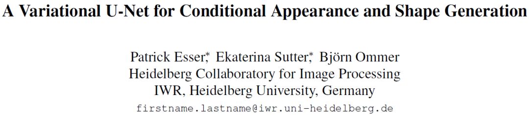 图 1:变分 U-Net 模型学习从左边的查询中进行推理,然后生成相同外观的目标在第一行所示的不同姿态下的图像。 由于深度学习的使用,生成模型最近有很大的进展,尤其是生成对抗网络 (GAN) [1, 8, 10, 27, 38]、变分自编码器 [16],以及它们的组合 [2, 17]。尽管有着引人注目的结果,但是这些模型在有着较大空间变化的图像分布上还是面临着性能较差的问题:尽管在完美注册的人脸数据集(例如对齐的 CelebA 数据集 [22])上能够生成高分辨率的图像 [19,13],然而从像 COCO[20] 多样化的数据集中合成整个人体仍然是一个开放性的问题。导致这个问题的主要原因是,虽然这些生成模型能够直接合成一个目标的图片,但是它无法对生成图像的外观和形状之间复杂的相互影响进行建模。所以,它们可以容易地向一张人脸添加胡须和眼镜,因为这相当于给那些图像区域重新着色。将这个与人物移动胳膊相比,后者相当于给旧的位置的胳膊用背景颜色着色,并且将新位置的背景转变为一只胳膊。我们所缺失的就是一个能够改变物体形状,而不是仅能够调整颜色的生成模型。 所以,在生成图像的过程中,我们要对外观、形状以及两者之间的复杂影响进行建模。对于通用的适用性,我们希望能够仅从静态的图像数据集中进行学习,而不需要展示同一目标不同形状的一系列图片。为此,研究者提出了条件 U-Net[30] 架构,这个架构用于从形状到目标图像的映射,以及将关于外观的变分自编码器的潜在表征条件化。为了解耦形状和外貌,我们允许利用与形状相关的简单可用信息,例如边缘或者身体关节位置的自动估计。然后该方法能实现条件图像生成和转换:为了合成不同的几何轮廓或者或者改变目标的外观,一个查询图片的外观或者形状会被保留,同时未被保留的那一部分就会被自由改变,甚至从其他图像导入。此外,模型也允许在不改变形状的情况下对外观分布进行采样。