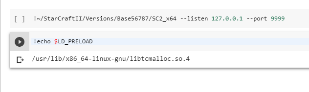 我成功地卸载了 TCMalloc,然后尽管还有错误信息,但是 StarCraft II 已经开始运行了,StarCraft II 机器学习项目的大门也随之开启了。 我已经在 Google Colab 上提出了这个 bug(https://github.com/googlecolab/colabtools/issues/106),因此我们以后不必为此大费周折了。