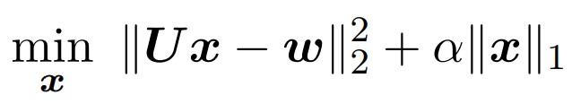 其中 w hat 为预测的非常见词词向量、U 为常见词词向量,而 x 为稀疏矩阵。 4. 最小化预测词向量和实际词向量间的距离来学习稀疏表征,即