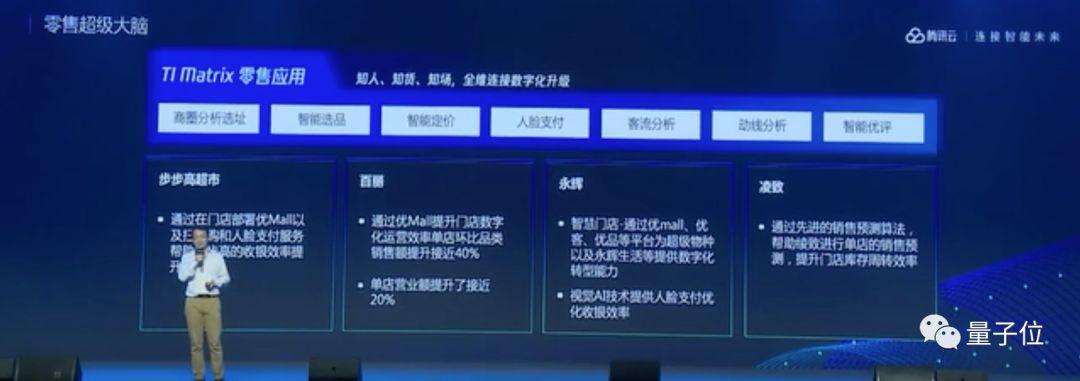 另一个案例是智慧零售,比如永辉超市。从供应、销售到支付等全流程,都在通过AI等技术实现变革。
