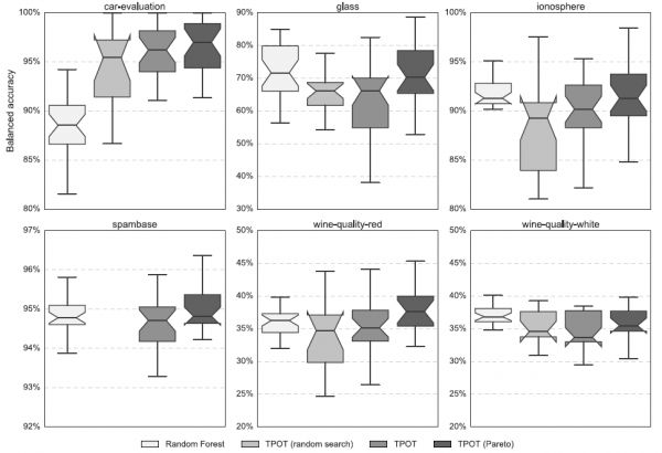 [1] Olson, Randal S., et al. "Automating biomedical data science through tree-based pipeline optimization." European Conference on the Applications of Evolutionary Computation. Springer, Cham, 2016.