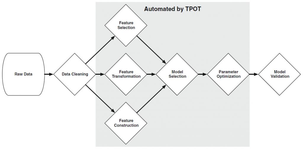 ▲ 图1:机器学习工作流中被TPOT优化的部分