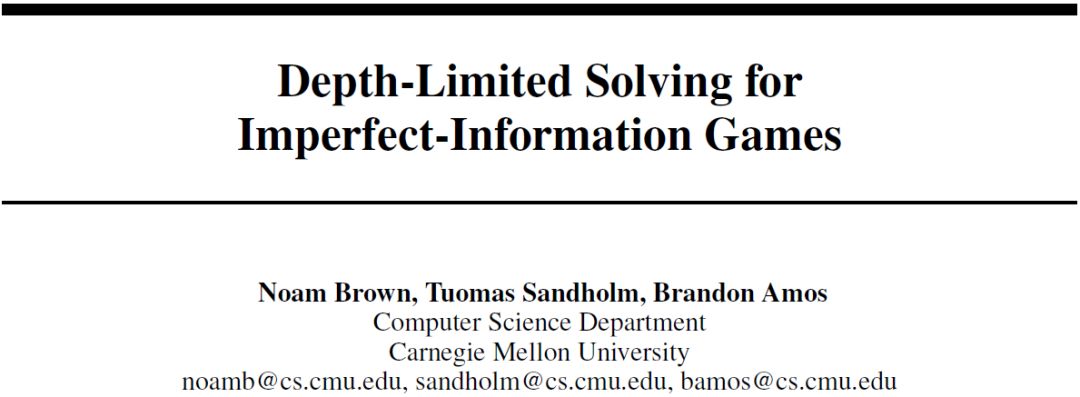 6.2 在一对一无限注德州扑克(HUNL)上对抗顶尖 AI 的实验 我们主要的实验使用了深度有限求解的方法,并仅使用普通笔记本电脑上的计算资源生成大师级的 HUNL 扑克 AI:Modicum。我们测试了 Modicum 与 Baby Tartanian8 [4] 和 Slumbot [18],其中 Baby Tartanian8 是 2016 年度计算机扑克竞赛的获胜者,Slumbot 是 2018 年度计算机扑克竞赛的获胜者。Baby Tartanian8 和 Slumbot 都不使用实时计算,它们的策略都是在预计算的查找表中搜索得到的。Baby Tartanian8 使用了约为 250000 个核心计算小时和 2TB RAM 来计算策略。相反,Modicum 只使用 700 个核心计算小时和 16GB 的 RAM 计算策略,它在使用 4 核 CPU 的情况下还能以人类专家的速度实时进行博弈(平均一手扑克需要 20 秒)。 7 对比先前研究工作 通过为状态分配多个值,本论文介绍了一种克服这一挑战的方法。一种不同的方法是将「状态」的定义修改为所有博弈者对状态的的信念概率分布(belief probability distribution),我们称之为联合信念状态,这种技术以前也用来开发扑克 AI DeepStack [26]。实验表明,在我们测试的领域中,使用多值状态(multi-valued states)能产生更好的性能。例如我们的方法在少于 1000 个核心计算小时的条件下能击败两种以前顶级的德州扑克 AI。相比之下,虽然 DeepStack 击败了在 HUNL 中不是那么专业的人类专家,但它即使使用了 1000000 个核心计算小时,也不能击败以前顶尖的 AI。但是,这两种方法都各自有优缺点,我们需要根据领域正确地选择,未来的研究也许会改进它们的性能与优势。 论文:Depth-Limited Solving for Imperfect-Information Games