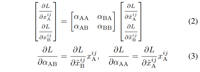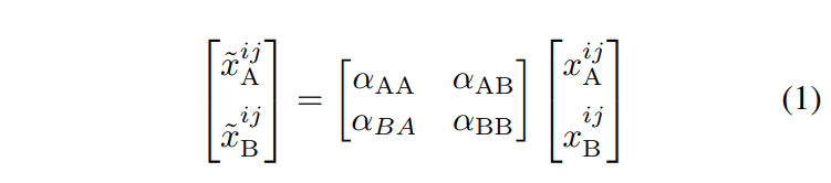 在下文中,为了方便,将 αAB 及 αBA 统称为 αD 表示不同任务的权重值,αAA 及 αBB 统称为 αS 表示相同任务的权重值。