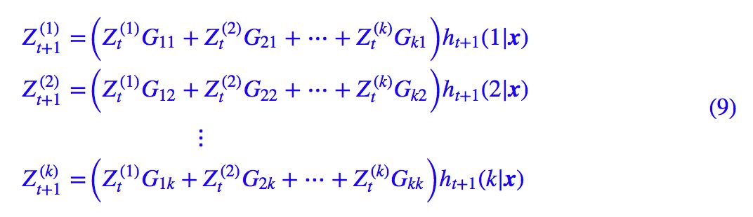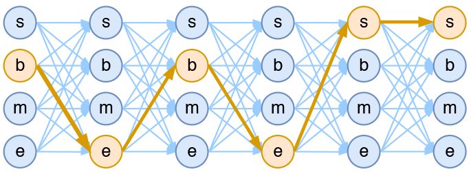 | 笔者去年曾写过文章《果壳中的条件随机场(CRF In A Nutshell)》[1],以一种比较粗糙的方式介绍了一下条件随机场(CRF)模型。然而那篇文章显然有很多不足的地方,比如介绍不够清晰,也不够完整,还没有实现,在这里我们重提这个模型,将相关内容补充完成。 本文是对 CRF 基本原理的一个简明的介绍。当然,"简明"是相对而言中,要想真的弄清楚 CRF,免不了要提及一些公式,如果只关心调用的读者,可以直接移到文末。 图示 按照之前的思路,我们依旧来对比一下普通的逐帧 softmax 和 CRF 的异同。 逐帧softmax CRF 主要用于序列标注问题,可以简单理解为是给序列中的每一帧都进行分类,既然是分类,很自然想到将这个序列用 CNN 或者 RNN 进行编码后,接一个全连接层用 softmax 激活,如下图所示:  ▲ 逐帧softmax并没有直接考虑输出的上下文关联 条件随机场 然而,当我们设计标签时,比如用 s、b、m、e 的 4 个标签来做字标注法的分词,目标输出序列本身会带有一些上下文关联,比如 s 后面就不能接 m 和 e,等等。逐标签 softmax 并没有考虑这种输出层面的上下文关联,所以它意味着把这些关联放到了编码层面,希望模型能自己学到这些内容,但有时候会"强模型所难"。 而 CRF 则更直接一点,它将输出层面的关联分离了出来,这使得模型在学习上更为"从容":  ▲ CRF在输出端显式地考虑了上下文关联 数学 当然,如果仅仅是引入输出的关联,还不仅仅是 CRF 的全部,CRF 的真正精巧的地方,是它以路径为单位,考虑的是路径的概率。 模型概要 假如一个输入有 n 帧,每一帧的标签有 k 中可能性,那么理论上就有k^n中不同的输入。我们可以将它用如下的网络图进行简单的可视化。在下图中,每个点代表一个标签的可能性,点之间的连线表示标签之间的关联,而每一种标注结果,都对应着图上的一条完整的路径。  ▲ 4tag分词模型中输出网络图 而在序列标注任务中,我们的正确答案是一般是唯一的。比如"今天天气不错",如果对应的分词结果是"今天/天气/不/错",那么目标输出序列就是 bebess,除此之外别的路径都不符合要求。 换言之,在序列标注任务中,我们的研究的基本单位应该是路径,我们要做的事情,是从 k^n 条路径选出正确的一条,那就意味着,如果将它视为一个分类问题,那么将是 k^n 类中选一类的分类问题。 这就是逐帧 softmax 和 CRF 的根本不同了:前者将序列标注看成是 n 个 k 分类问题,后者将序列标注看成是 1 个 k^n 分类问题。 具体来讲,在 CRF 的序列标注问题中,我们要计算的是条件概率:  为了得到这个概率的估计,CRF 做了两个假设: 假设一:该分布是指数族分布。 这个假设意味着存在函数 f(y1,…,yn;x),使得:  其中 Z(x) 是归一化因子,因为这个是条件分布,所以归一化因子跟 x 有关。这个 f 函数可以视为一个打分函数,打分函数取指数并归一化后就得到概率分布。 假设二:输出之间的关联仅发生在相邻位置,并且关联是指数加性的。 这个假设意味着 f(y1,…,yn;x) 可以更进一步简化为:  这也就是说,现在我们只需要对每一个标签和每一个相邻标签对分别打分,然后将所有打分结果求和得到总分。 线性链CRF 尽管已经做了大量简化,但一般来说,(3) 式所表示的概率模型还是过于复杂,难以求解。于是考虑到当前深度学习模型中,RNN 或者层叠 CNN 等模型已经能够比较充分捕捉各个 y 与输出 x 的联系,因此,我们不妨考虑函数 g 跟 x 无关,那么:  这时候 g 实际上就是一个有限的、待训练的参数矩阵而已,而单标签的打分函数 h(yi;x) 我们可以通过 RNN 或者 CNN 来建模。因此,该模型是可以建立的,其中概率分布变为:  这就是线性链 CRF 的概念。 归一化因子 为了训练 CRF 模型,我们用最大似然方法,也就是用:  作为损失函数,可以算出它等于:  其中第一项是原来概率式的分子的对数,它目标的序列的打分,虽然它看上去挺迂回的,但是并不难计算。真正的难度在于分母的对数 logZ(x) 这一项。 归一化因子,在物理上也叫配分函数,在这里它需要我们对所有可能的路径的打分进行指数求和,而我们前面已经说到,这样的路径数是指数量级的(k^n),因此直接来算几乎是不可能的。 事实上,归一化因子难算,几乎是所有概率图模型的公共难题。幸运的是,在 CRF 模型中,由于我们只考虑了临近标签的联系(马尔可夫假设),因此我们可以递归地算出归一化因子,这使得原来是指数级的计算量降低为线性级别。 具体来说,我们将计算到时刻 t 的归一化因子记为 Zt,并将它分为 k 个部分:  其中 分别是截止到当前时刻 t 中、以标签 1,…,k 为终点的所有路径的得分指数和。那么,我们可以递归地计算:  它可以简单写为矩阵形式:  其中 ,而 G 是对 g(yi,yj) 各个元素取指数后的矩阵,即 ;而 是编码模型 (RNN、CNN等)对位置 t+1 的各个标签的打分的指数,即 ,也是一个向量。式 (10) 中,ZtG 这一步是矩阵乘法,得到一个向量,而 ⊗ 是两个向量的逐位对应相乘。  ▲ 归一化因子的递归计算图示。从t到t+1时刻的计算,包括转移概率和j+1节点本身的概率 如果不熟悉的读者,可能一下子比较难接受 (10) 式。读者可以把 n=1,n=2,n=3 时的归一化因子写出来,试着找它们的递归关系,慢慢地就可以理解 (10) 式了。 动态规划 写出损失函数 −logP(y1,…,yn|x) 后,就可以完成模型的训练了,因为目前的深度学习框架都已经带有自动求导的功能,只要我们能写出可导的 loss,就可以帮我们