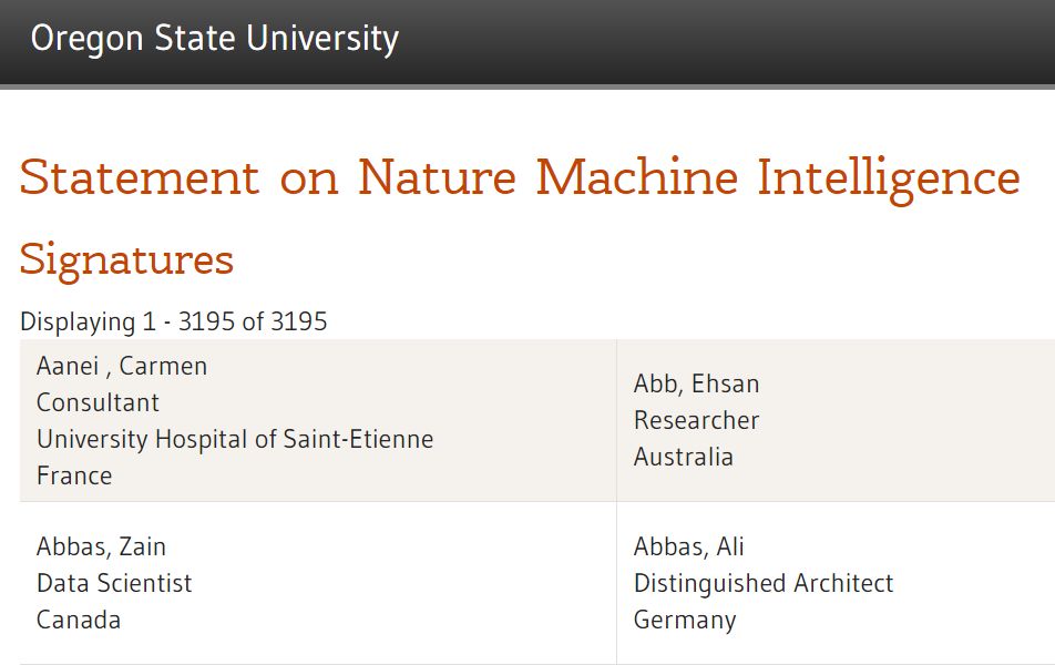 机器学习是一个年轻且对技术敏感的领域。它没有其他领域的历史传统,该领域的学者也认为没有必要采用封闭式出版模式。社区内部自行创建、整理并审阅社区内所进行的研究。我们利用互联网创建了新的期刊,免费提供给作者。订阅和精装书籍的时代似乎已经过去了。 公众已经缴纳了税款资助我们研究,为什么还要再次付费才能阅读成果?资金较少的大学的同行也从中受益。乌干达坎帕拉的马凯雷雷大学(Makerere University)与哈佛或麻省理工学院一样,都有机会进行前沿的机器学习研究。支付能力不再对参与能力起决定性作用。 机器学习已经证明,没有商业出版商的参与,学术领域不仅可以生存,而且可以繁荣发展。但这并没有阻止传统出版商进入市场。我们的成功引起了他们的注意。最近,Springer Nature 出版集团发布了一份名为《Nature Machine Intelligence》的新期刊。该出版商现有 53 种名字中带有「Nature」字样的期刊。 我们应该担心吗?当前已经有了一个分享观点的开放模式,为什么作者和读者还要投向营利性订阅期刊?那是因为学术出版商手里还有一张牌:他们的品牌。学术研究的多样性和数量意味着一个领域的研究人员很难对另一个领域的研究进行评价。有时杂志的品牌会被看做质量的保证。当学者们寻求晋升时,在「知名期刊」上发表论文可能会有很大帮助。Nature 是学术出版界的劳力士。但与劳力士不同的是,劳力士的员工负责手表的创新,Nature 的内容则要靠学术界提供。我们是制表商,他们只是经销商。 抵制 Nature 期刊声明的签署页,目前已有超过 3000 人签名