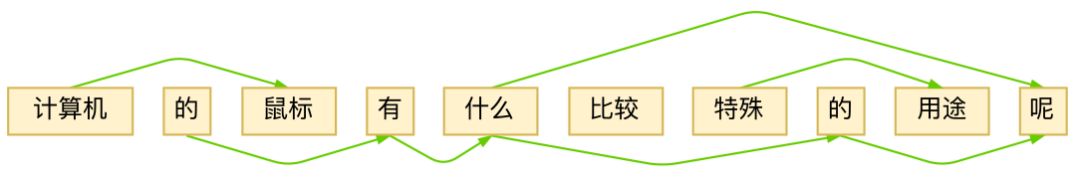 因为考虑了 Skip Gram 模型,因此我们可以把句子内比较"紧凑"(互信息比较大)的"词对"连接起来,用图论的角度看,这就构成了一个"有向无环图":