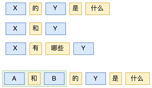 4. "X 是 X 意思"、"X 有哪些 X"等模版则反映了语言的一些固定搭配。