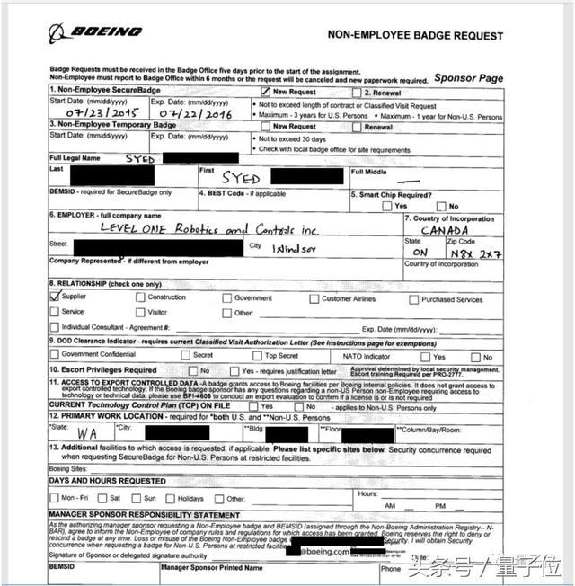 △ 发现的波音公司的证章申请表