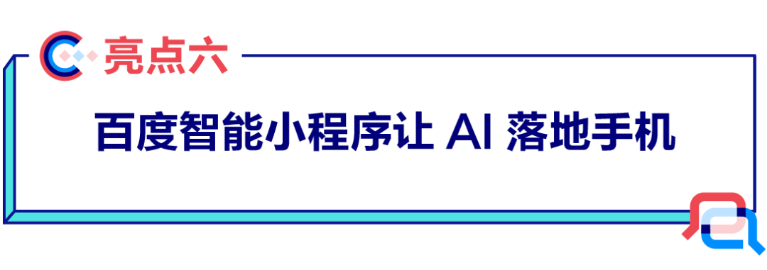 除了以上这些百度 AI 平台化、基础层的重磅发布升级,此次百度全新发布"智能小程序",将彻底打通 AI 与移动端,让 AI 在手机上全面落地。