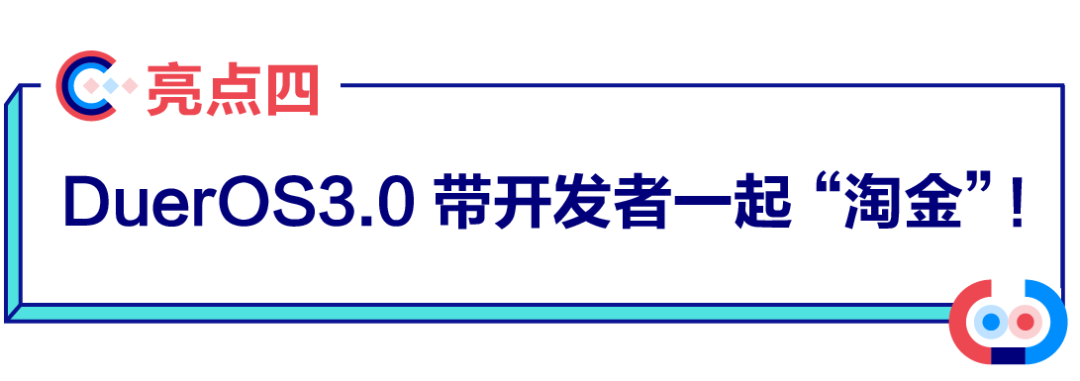 DuerOS3.0 此次重大革新在于打通了商业模式闭环,正式启动了商业分成模式,更在现场宣布 DuerOS 在前6个月将会把技能收入100%回馈开发者,这意味着 DuerOS 要带领对话式 AI 领域的开发者开始"淘金"了。