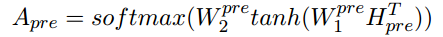 然后我们利用自注意力机制来计算 和 的线性表示。特别的,我们的注意力机制利用 和 作为输入,并输出注意力矩阵 ( )as the inputs and produces a matrix of attention-weight ( )。