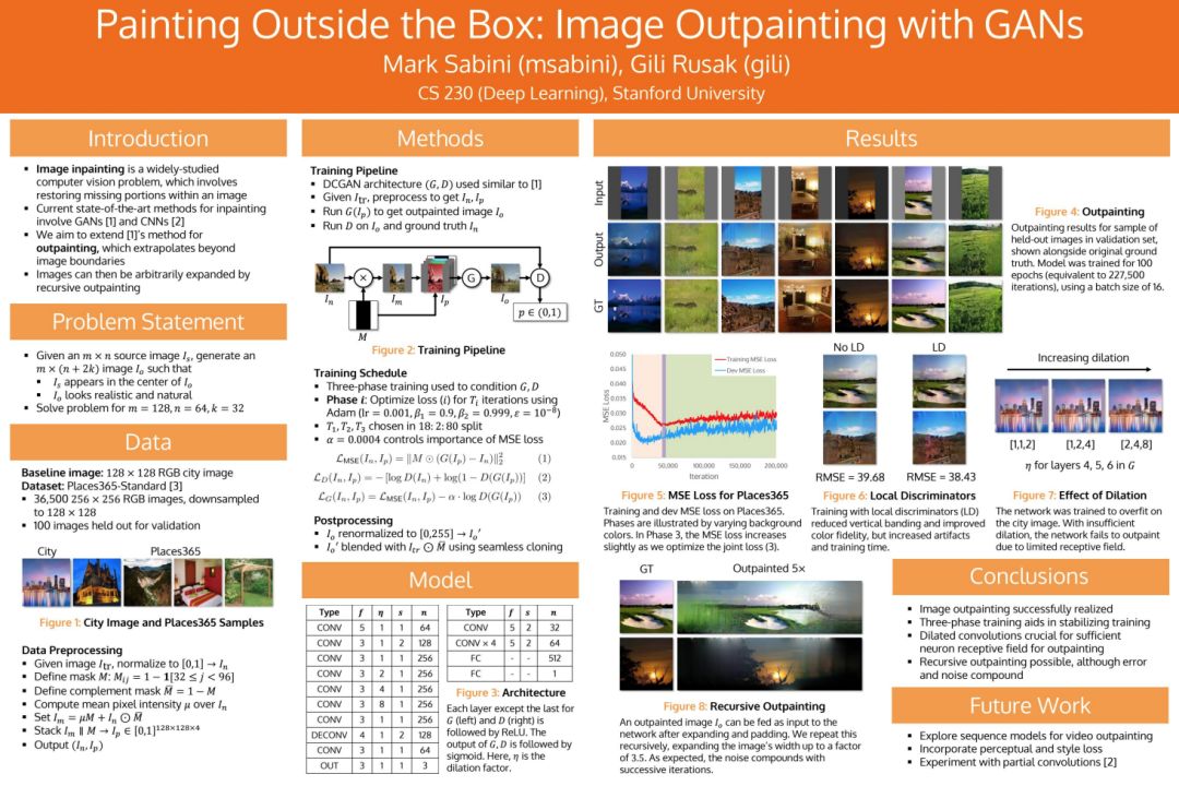 这一研究来自斯坦福大学两位同学CS230深度学习的课程作业,未来,两位同学希望可以将这一补全能力从图片扩展到视频上。 可以通过下边这页poster简单了解👇