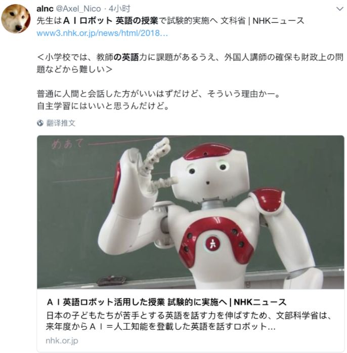 英语课目前是12到15岁日本学生的必修课,但是启蒙年龄会在2020年被降低到小学生段。2020年东京奥运会期间预计将有大批外国游客涌入日本,日本政府尝试在此之前提高国民英文水平。 对这样的计划,日本的国民并没有作出乐观的反应。大多数人表现出的是对AI技术进入课堂的无奈和对计划合理性的质疑。 来看一些推特上的评论👇
