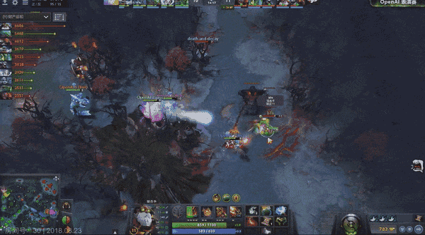 AI操纵潮汐猎人多次抓准时机,反手跳大控制住人类多名玩家;矮人直升机召唤飞弹、高射火炮齐开几轮清场。对战期间,AI甚至一度逼得职业战队玩家W33在屏幕上打出:"?"。
