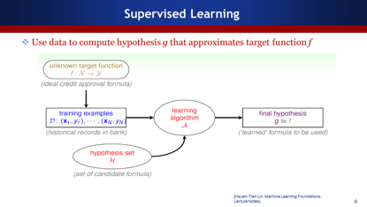 机器学习从大的角度分成两类:监督学习与无监督学习(Supervised Learning & Unsupervised Learning)。比如我们通过房间里的照片来识别人脸,用某些方式进行一定的标注来确定人脸在什么地方,这时候我们就叫做有监督的学习。监督学习的框架如上图所示,根据预测的函数,把机器学习的特征映射到值域上。