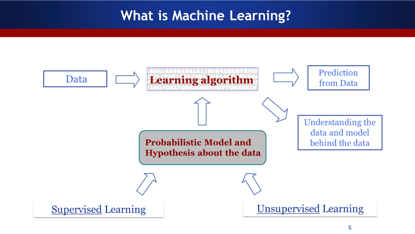 什么是机器学习?首先需要有一堆数据,然后有机器学习的算法,对于数据的统计建模、概率建模和数据的假设来作为算法的支撑。机器学习一般常用的应用是对数据进行预测,比如预测明天股票的价格,这种都是一些基础的预测,更重要的是通过机器学习,去学习数据中的一些模式。