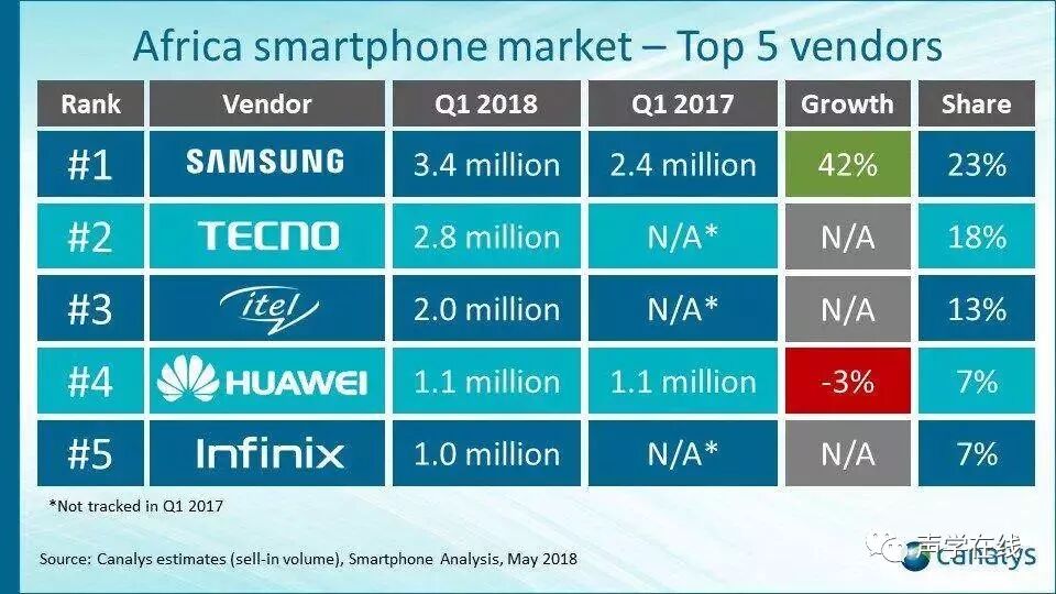 面对国内智能手机市场激烈的竞争,Tecno另辟新路,选择去非洲开辟新市场,针对当地消费需求进行了技术与销售创新,打磨满足消费者实际需求的产品。 自2006年作为第一家双卡移动设备供应商在非洲成立以来,TECNO移动已经发展成为非洲大陆的家喻户晓的品牌,这一品牌在非洲大陆多个国家的人气越来越高,被誉为"非洲手机之王"。 根据 Canalys 提供的数据,今年第一季度,三星凭借 340 万销量、23% 的市占率、高达 42% 的销量增长率,成为了非洲智能手机市场的第一大品牌。但是,这只是表面数据,真正的赢家并非三星,而是传音。因为itel 和 Infinix 均为传音的子品牌。三品牌相加,传音系总销量高达 490 万台,市场占有率为 38%,是毫无争议的非洲第一大手机厂商。  但是无论各大手机品牌如何变着法地开发智能手机市场,由于市场已经逐渐饱和,未来智能手机的全球销量已经不会有太大的增长。智能手机出货量在2018年第二季度已经下降2%,至3.6亿部,而中国智能手机市场更是持续下滑四个季度。 相比于智能手机的疲软,功能手机的市场无疑又一次开始复苏了。市场研究公司Counterpoint称,在2017年,全球智能手机市场仅增长了2%;而全球功能手机市场似乎开始复苏,增长了5%,增长到了4.5亿部。 你以为功能手机的受众是中低收入者吗?不,凯度调查报告显示,75%的接受问卷调查的功能手机用户都属于高收入阶层。另外只有15%使用功能手机的受访者表示他们会换用智能手机。 这说明消费者对于新的功能手机是感到很满意的,因为功能手机现在已经有了智能手机的一切功能,而且价格还很实惠。