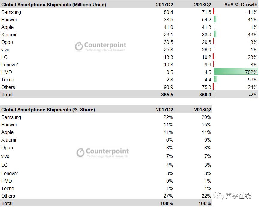 | 说起智能手机你会想起什么?iPhone,三星还是华为小米OV?朋友,或许你还记得诺基亚?没错,就是那个你能摔坏算我输的诺基亚。 根据Counterpoint市场监测服务的最新研究显示,诺基亚HMD在2018年第二季度的智能手机出货量达到了450万部,而去年同期出货数量仅为50万部,增长率达到了惊人的782%。 这是诺基亚HMD在重新进入智能手机市场以后,首次进入全球十大智能手机出货量排名榜。