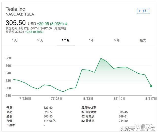 然而随着马斯克这次私有化消息更多实情进展放出,股价又开始回跌。