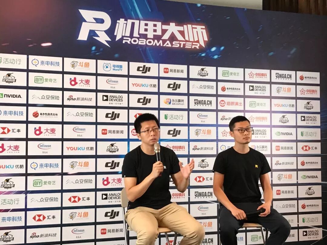 大疆 RoboMaster 赛事负责人高建荣(左)和 RoboMaster 技术负责人杨硕(右)