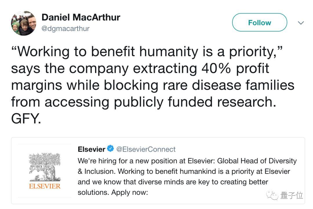 于是,Twitter上的讨论一路扩散开来,从罕见病患者家庭究竟能不能获取爱思唯尔上的论文,到学术出版商究竟该赚多少钱,再到该不该为爱思唯尔审稿……