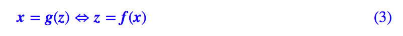 要从理论上(数学上)实现可逆,那么要求 z 和 x 的维度一样。假设 f,g 的形式都知道了,那么通过 (1) 算 q(x) 相当于是对 q(z) 做一个积分变换 z=f(x)。即本来是: