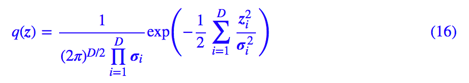 为什么这个尺度变换能识别特征的重要程度呢?其实这个尺度变换层可以换一种更加清晰的方式描述:我们开始设 z 的先验分布为标准正态分布,也就是各个方差都为 1。 事实上,我们可以将先验分布的方差也作为训练参数,这样训练完成后方差有大有小,方差越小,说明该特征的"弥散"越小,如果方差为 0,那么该特征就恒为均值 0,该维度的分布坍缩为一个点,于是这意味着流形减少了一维。 不同于 (4) 式,我们写出带方差的正态分布: