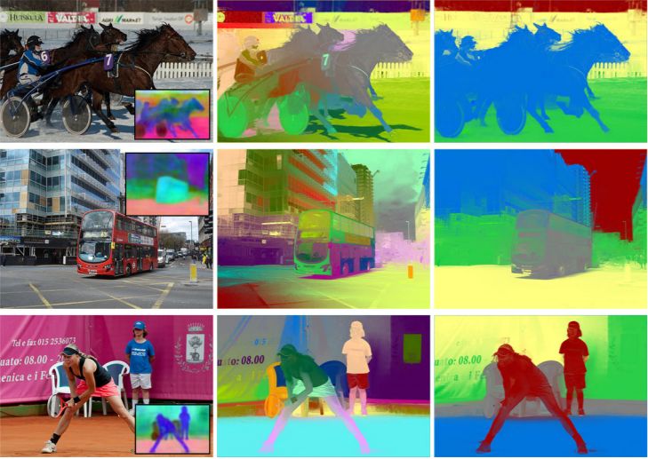 图 7:输入图像和计算出的语义特征(左),具备很多层的初始估计软分割(中),grouping 后的中间软分割结果(右)。通过为每个分割部分指定一个纯色来可视化软分割结果。注意这些结果会随着松弛的稀疏化(relaxed sparsification)进行进一步细化。图源:[Lin et al. 2014]。 ]]> 原文: https://ift.tt/2PqWiON |