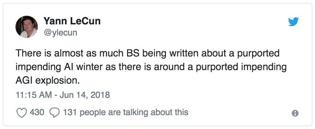 随着深度学习的热度开始消退,这个梗最近开始在社交媒体上广为流传,引起了互联网上众人的讥笑。机器学习没什么好激动的,它只是对统计技术的一种补充——这种观点越来越普遍;但问题是这个观点并不正确。 我明白,成为一个极度狂热的深度学习传播者并不时尚。哪怕是 2013 年试图让所有人都知道深度学习的机器学习专家,现在再提起这个术语也只有失望,他们现在更倾向于弱化现代神经网络的力量,唯恐人们将他们与还认为「import keras」是万金油的人混为一谈。而他们自认为与后者相比,自己还是相当有优势的。 虽然正如 Yann LeCun 所说,深度学习已经不再是一个时髦的词,但这种矫枉过正的态度已经对人工智能的进步、未来和实用性产生了不良的影响。这一点在关于人工智能寒冬的讨论中体现得尤为明显,在这个寒潮里,人工智能被预言将会像几十年前一样停滞多年。