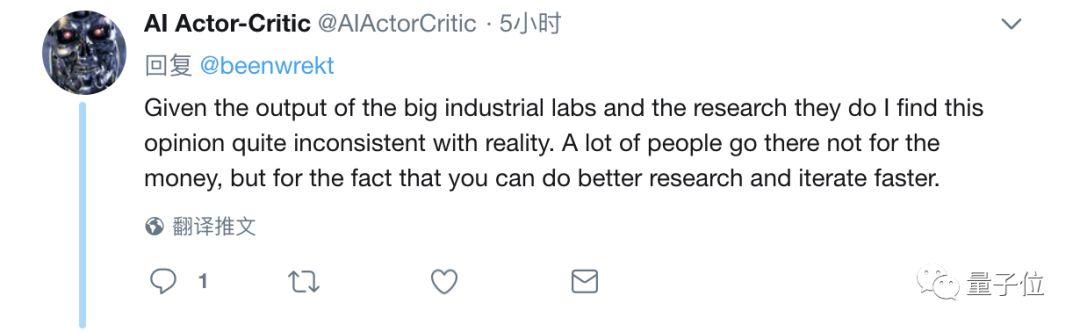 "看那些产业界大型实验室的研究成果吧,很多人去产业界根本不是为了钱,而是为了更好地进行研究、更快地迭代。"