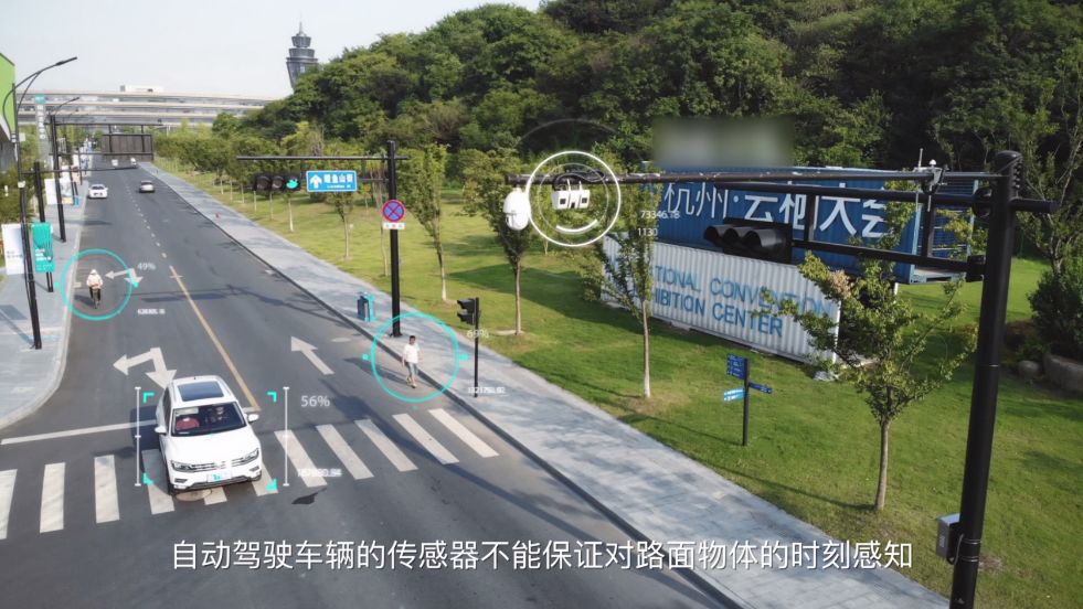 产品概念相对新颖,但实现的效果有点像 V2X,也就是车与外界的交互 但你可以这样理解—— 把几十年前通用埋在地底下的那套感应装置浓缩升级为一个个体积更小,成本相对更低的摄像头传感组合,并嵌入了图像识别等能力。 当然,这也有点类似于安防领域内,城市各个角落的摄像头与派出所后台大数据分析及识别系统的信息交互,摇身一变成了「智能感知基站与车辆间的交互」。 甚至于再通俗一点就是 :每隔 200 米,就多了一个「交警」。 此外,由于涉及到一些不可透露的技术机密,王刚只能用口头陈述来介绍这套产品的感知效果: 在多次开放路段的对比路测实验中,如果感知基站并未开启,那么有障碍物(行人)在距离无人车不到 2 米时冲入车道,车辆完全不能进行紧急避让;但在开启基站后,无人车会提前对障碍物进行感知,并 100% 避让成功。 但这里面又让我们产生了多个疑问 譬如这辆车究竟是级别为多少的无人车?行驶车速为多少?如果路边行人本无意过马路,只是突然冲进车道,那么基站究竟是如何进行精准判断的?识别过程是在本地进行处理的吗? 很遗憾,对于技术细节的所有追问,阿里并没有给出更多的解释。